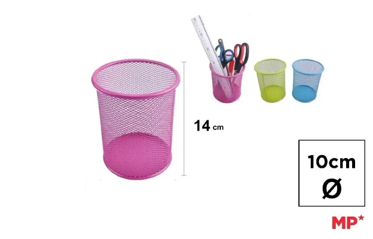 Okrągły stojak na artykuły piśmiennicze został wykonany z wytrzymałej metalowej siatki, co gwarantuje jego trwałość i nowoczesny wygląd. To idealne rozwiązanie do utrzymania ołówków, długopisów, markerów, czy korektorów w zasięgu ręki, jednocześnie dbając o ich uporządkowanie.