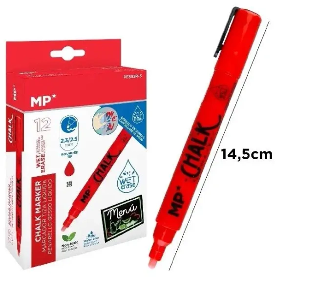 Marker kredowy do ścierania na mokro czerw (12szt) - MP Main Paper