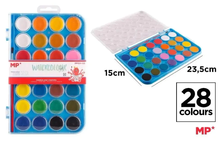 Farba akwarelowa z pędzelkiem 28 kolorów - MP Main Paper
