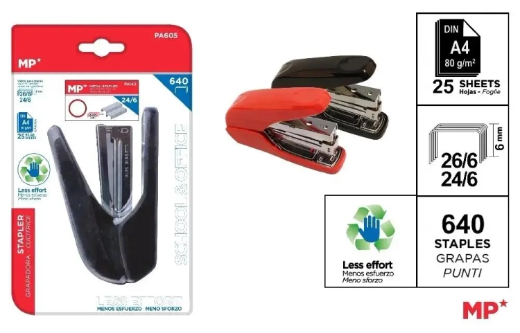 Zszywacz duży 60% mniej wysiłku 24/6 + zszywki MIX - MP Main Paper