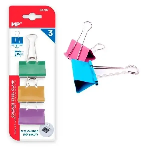 Klipsy biurowe kolorowe 3szt./opakowanie 41mm MP