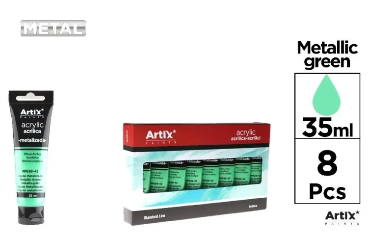 Farba akrylowa 35ml zielona metaliczna (8szt) - Artix