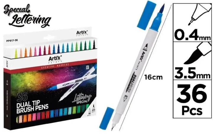 Odkryj możliwości precyzyjnego rysowania dzięki dwustronnym markerom pędzelkowym ARTIX, dostępnym w zestawie zawierającym aż 36 różnych kolorów. Te unikalne przybory łączą w sobie wszechstronność i wygodę, co czyni je idealnym wyborem zarówno dla profesjonalnych artystów, jak i amatorów poszukujących inspirujących narzędzi do tworzenia.