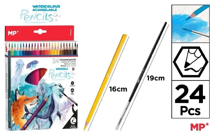 Kredki akwarelowe + pędzelek 24 kolory - MP Main Paper