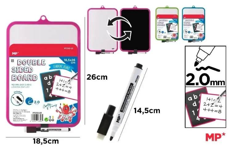 Tablica biała dwustronna z markerem 18,5x26cm MIX - MP Main Paper