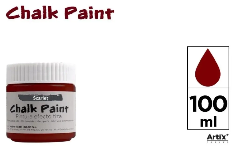 Farba kredowa ARTIX to idealne rozwiązanie dla wszystkich, którzy poszukują materiałów o żywych i wyrazistych kolorach. Opakowanie zawiera 6 sztuk o pojemności 100 ml każda w intensywnym, czerwonym odcieniu szkarłatnym.