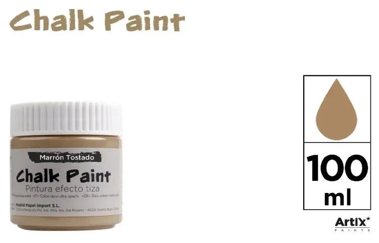 Odkryj wysokiej jakości farbę kredową w przyjemnym brązowym odcieniu. Produkt jest dostępny w zestawie, który zawiera sześć 100 ml pojemników, zapewniając doskonałą wydajność i trwałość. Idealna do różnorodnych projektów artystycznych, pozwala osiągnąć gładkie i matowe wykończenie.