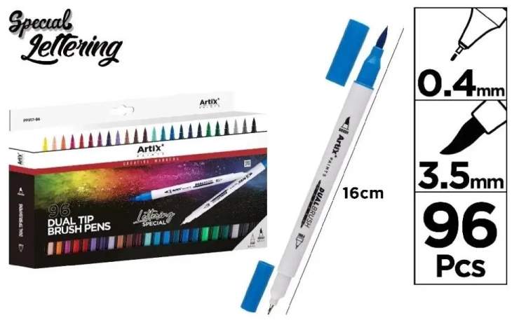 Odkryj dwustronny marker pędzelkowy marki ARTIX, który zapewnia aż 96 różnych kolorów w jednym opakowaniu. To idealne narzędzie do twórczych projektów, zarówno dla artystów, jak i hobbystów.