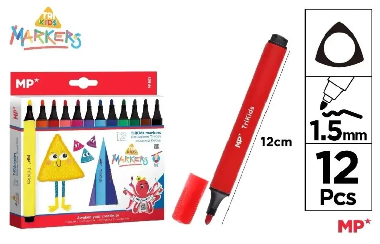 Flamastry szkolne trójkątne 12 kolorów - MP Main Paper
