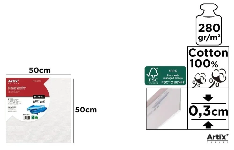 Tablica malarska 50x50x0,3cm 280G/m2 - Artix
