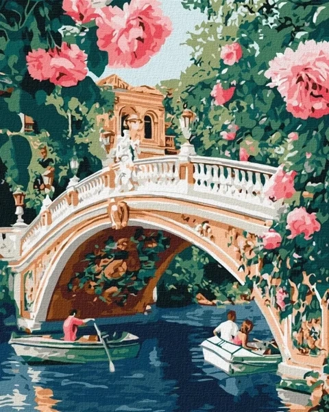 Malowanie po numerach - Most i kwiaty 40x50cm - Ideyka