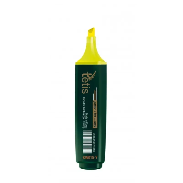 Zakreślacz płaski przeznaczony do papieru zwykłego, samokopiującego i faksowego. Wypełniony wodoodpornym i światłoodpornym tuszem pigmentowym na bazie wody. Nie zawiera ksylenu i toluenu. Cechy: - wypełnienie wodo i światłoodpornym tuszem pigmentowym na bazie wody - nie zawiera ksylenu i toluenu. - do papieru: zwykłego, samokopiującego i faksowego - kolor żółty