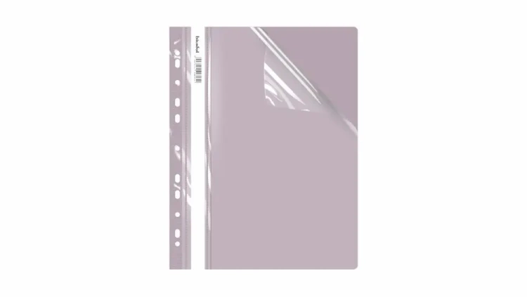 Dzięki europejskiej perforacji skoroszyt bez problemu można wpiąć do każdej teczki z klasycznym ringiem. Wewnątrz znajdziesz klasyczny mechanizm z listwą i wąsem, zapewniający właściwe zabezpieczenie dokumentów. Po bokach umieszczono wymienny papierowy pasek, który pozwala opisać jego zawartość, a także opatrzono go kodem kreskowym. Dwa specjalne wycięcia sprawiają, że wysuwanie paska staje się banalnie proste, a zaokrąglone rogi obu okładek dodają elegancji.
