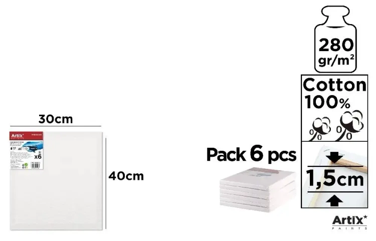 Podobrazie 30x40x1,5cm 280G/m2 (6szt) - Artix