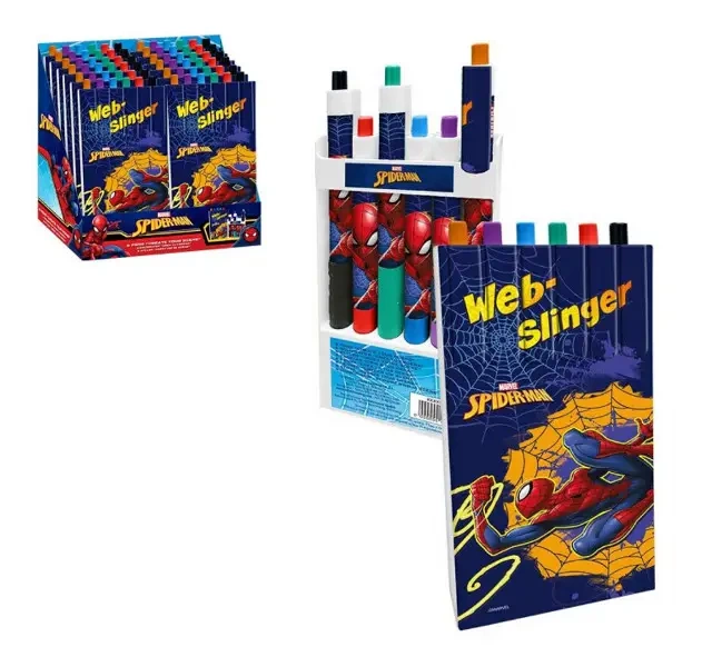 Zestaw 6 kolorowych długopisów Spiderman, pozwoli dziecku na słodką zabawę w pisanie, rysowanie czy kolorowanie.