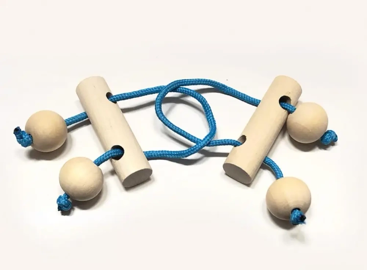 Zabawka edukacyjna. Poplątaniec. Belki i sznurki
