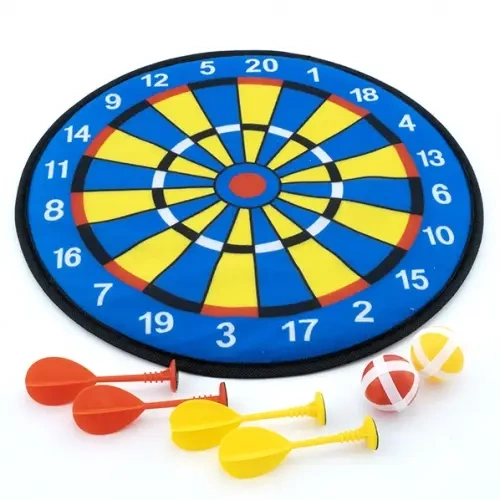 W zestawie znajduje się tarcza, 4 rzutki oraz 2 piłki.