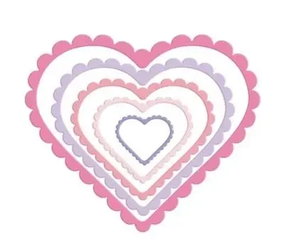 Odkryj zestaw wykrojników zaprojektowany w urzekającym kształcie serc z falbanką, dostępny w kilku rozmiarach.