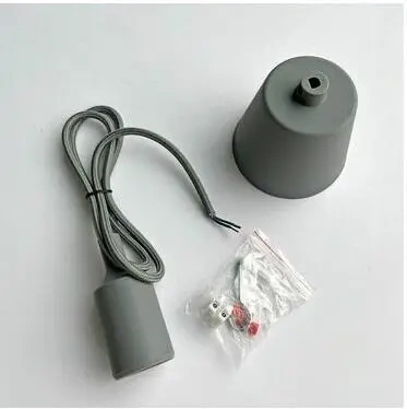 Silikonowa oprawka E27 z przewodem w oplocie w kolorze jasnoszarym.