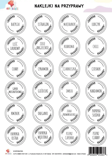Naklejki na przyprawy białe A4 - All4Kids