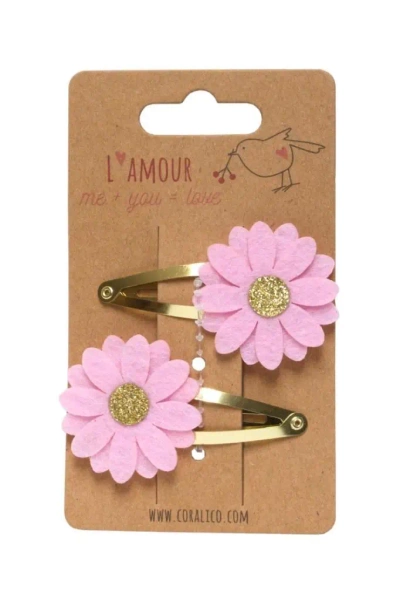 Zestaw spinek z kwiatkami. Odcienie różu i złota