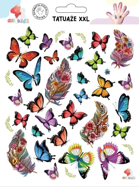 Tatuaże zmywalne dla dzieci Pióra motyle XXL - All4Kids