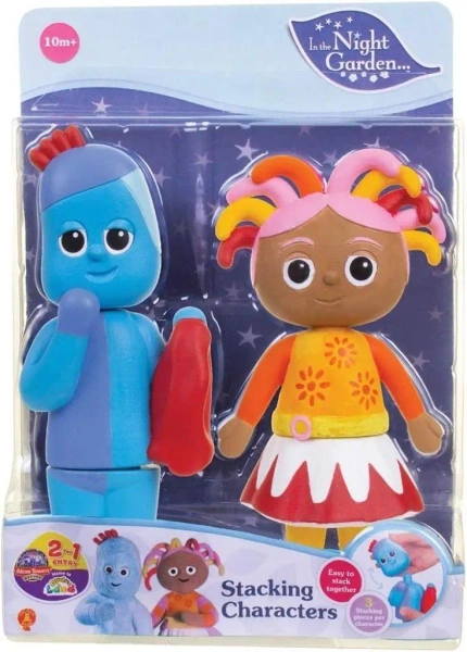 Zestaw 2 figurek z bajki Dobranocny Ogród - Igipigiel i Upsy Daisy. Wysokość: ok. 19 cm każda. Każda figurka składa się z trzech części, które dziecko może od siebie oddzielać, a następnie z powrotem składać postać w całość Wysokiej jakości tworzywo. Figurki stoją samodzielnie Wiek dziecka: 10 miesięcy+