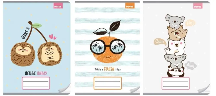 - Format A4 z 32 kartkami w kolorowe trzy linie