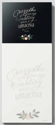 Zawarty na magnesie werset biblijny, „Wszystko mogę w Tym, który mnie umacnia. [Flp. 4,13]”, motywuje i dodaje otuchy każdego dnia, przypominając o sile, którą możesz czerpać z wiary.