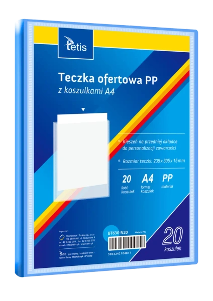 Teczka ofertowa A4 PP + 20 koszulek niebieska - Tetis