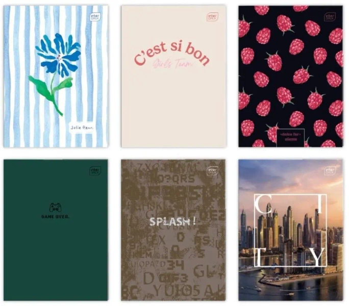 Zestaw obejmuje 5 zeszytów, dając możliwość zapisu bogatej ilości notatek lub pomysłów. Każdy egzemplarz wyróżnia się unikalnym wzorem, dzięki czemu można nadać osobisty charakter codziennym zapiskom.