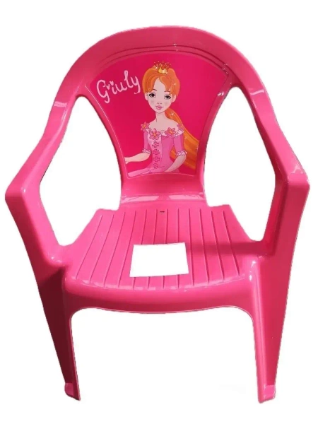 krzesełko plastikowe, kolor Różowy, wtopiona etykieta IML z kolorowym motywem w oparcie krzesła uniemożliwa jego odklejenie i gwarantuje wysoką odporność na warunki atmosferyczne, doskonała dekoracja pokoiku dziecięcego (można również stosować na zewnątrz)