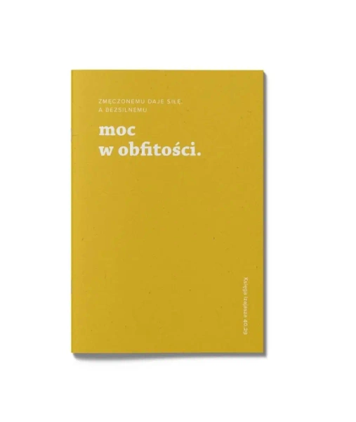 Na okładce znajdziesz inspirujący werset: "Zmęczonemu daje siłę, a bezsilnemu moc w obfitości." Pochodzi on z Księgi Izajasza 40,29 i dodaje zeszytowi wyjątkowego charakteru.