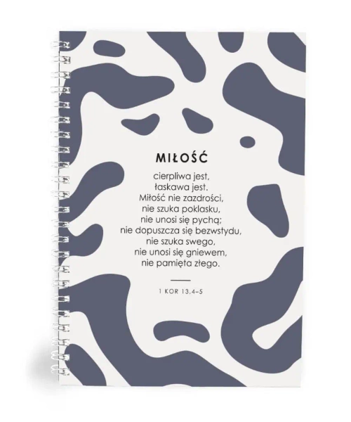 Mój dziennik "Miłość Cierpliwa Jest Kształty" to idealny wybór dla tych, którzy chcą zasmakować prawdziwej miłości w codziennym życiu. Notuj swoje myśli, modlitwy i przebłyski inspiracji, a piękny, abstrakcyjny projekt okładki uczyni każdą chwilę wyjątkową. Na okładce znajduje się fragment z 1 Listu do Koryntian (1 Kor 13,4-5), który mówi o miłości: "Miłość cierpliwa jest, łaskawa jest. Miłość nie zazdrości, nie szuka poklasku, nie unosi się pychą".