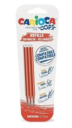 Wkład do długopisu wymazyw Oops czerwony 3szt - Carioca