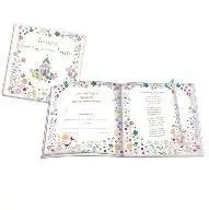 Książeczka Komunijna w formacie 21,5 x 21,5 cm. Oprawa twarda złocona. Autorskie ilustracje, własny dobór tekstów. Książeczka 12-nasto stronicowa z kopertą na pieniążki.
