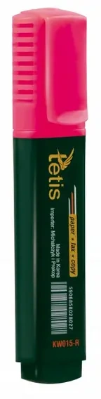Zakreślacz płaski przeznaczony do papieru zwykłego, samokopiującego i faksowego. Wypełniony wodoodpornym i światłoodpornym tuszem pigmentowym na bazie wody. Nie zawiera ksylenu i toluenu.