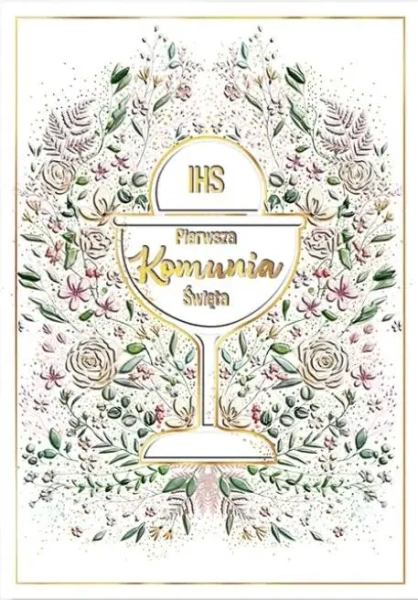 Karnet A5 Komunia. Kielich w kwiatach - Henry