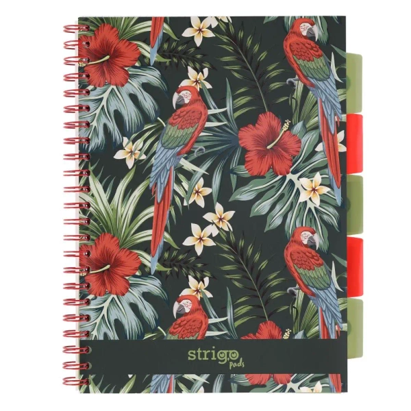 Kołozeszyt Strigo Projekt z kolekcji Tropiki- Papuga, o formacie A4, to niezastąpione narzędzie dla uczniów, studentów oraz wszystkich, którzy szukają harmonii i kreatywności w codziennym spisywaniu pomysłów.