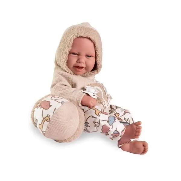 Lalka hiszpańska Carlo z piłką Antonio Juan 50420 Zaprojektowana i stworzona z dbałością o każdy detal, lalka hiszpańska 50420 to wyjątkowy projekt Antonio Juan. Jedna z najbardziej rozpoznawalnych marek proponuje radosnego chłopca imieniem Carlo w nowej, oryginalnej odsłonie. 42- centymetrowy bobas przypomina prawdziwe niemowlę. Ma zaznaczoną płeć. Jest wykonany z gładkiego, miękkiego, bezpiecznego dla dzieci winylu. Zachwycają wysokiej jakości szyte ręcznie ubranka, a miękka piłka uatrakcyjnia zabawę. Dlaczego warto wybrać dla dziewczynki lalkę hiszpańską o imieniu Carlo? Lalka hiszpańska Antonio Juan 50420 wygląda jak żywe dziecko: niebieskie, ręcznie malowane oczy opatrzone są długimi rzęsami i brwiami, uroku dodają lśniące usteczka oraz rumiane policzki, wyrzeźbione na główce włosy zapewniają najmłodszym bezpieczeństwo podczas zabawy, dopracowane paznokcie, linie papilarne oraz fałdki dodają bobasowi realizmu. Uzupełnij kolekcję lalek hiszpańskich o radosnego chłopca! Lalka hiszpańska 50420 marki Antonio Juan to marzenie każdego dziecka, uwielbiającego zabawę w odgrywanie ról. Autentyczny wygląd pozwala z łatwością wcielić się w rolę troskliwego rodzica. Carlo ubrany jest w oryginalnie zaprojektowany, ciepły strój: bluzę z kapturem oraz wzorzyste spodenki. Zwracają uwagę futrzane wykończenia. Strój z łatwością można zdjąć, a bobasa przebrać lub wykąpać. W zestawie znajduje się miękka poduszka-piłka z łączonych materiałów oraz przypinany smoczek na łańcuszku. W całości wykonana w Hiszpanii luksusowa winylowa lalka zapakowana jest w firmowe, biało-różowe pudełko ozdobne z wieczkiem. Może ono posłużyć także jako łóżeczko dla bobasa.