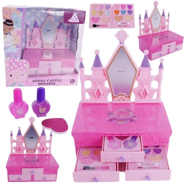 Toaletka zamek to zjawiskowy kuferek z kosmetykami dla dzieci, który zapewni Twojemu dziecku godziny kreatywnej zabawy i eksperymentowania z różnymi stylami i efektami.