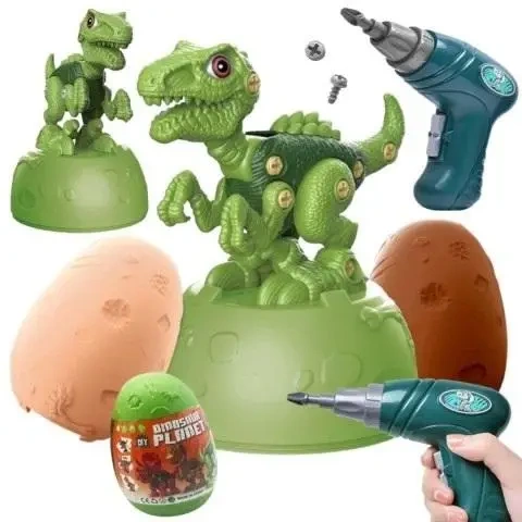 Głównym elementem zestawu jest dinozaur, który ukrywa się w jaju. To początkowo zagadkowe jajo staje się inspiracją do eksploracji i odkrywania, co kryje się w środku. Zestaw zawiera wkrętarkę oraz śrubki, które umożliwiają dziecku samodzielne skręcenie dinozaura. To doskonały sposób na rozwijanie umiejętności manualnych i konstrukcyjnych!