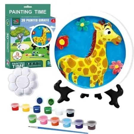 W zestawie znajduje się gipsowa podstawa z żyrafą na sztaludze. Akcesoria dołączone do zestawu pozwolą stworzyć prawdziwe dzieło sztuki.