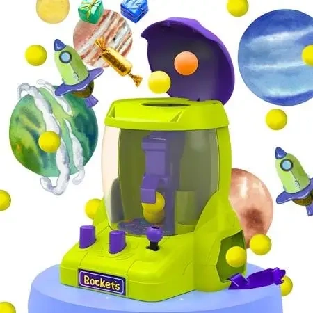 Zabawka wyposażona jest w chwytak, który pozwala dzieciom spróbować swoich sił w łapaniu ulubionych zabawek. Z przodu znajduje się panel sterowania. To idealna okazja do rozwijania zdolności motorycznych i koncentracji, jednocześnie dostarczając wiele frajdy i uśmiechu na twarzach dzieci. Maszyna wygląda jak rakieta, co z pewnością zainteresuje wszystkich fanów kosmosu, a na dodatek będzie doskonałą zabawką jako figurka.