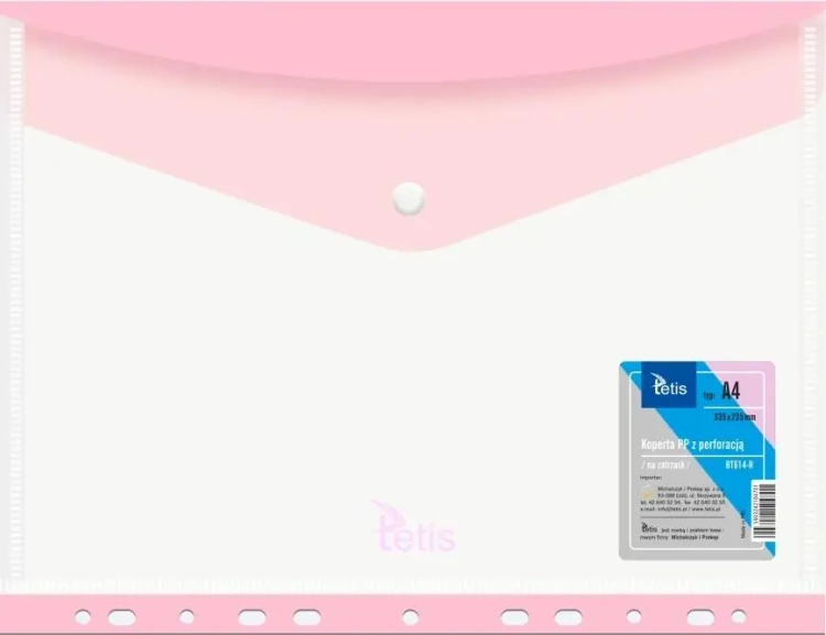 Koperta A4 PP na zatrzask perfor. różowa (6szt) - Tetis