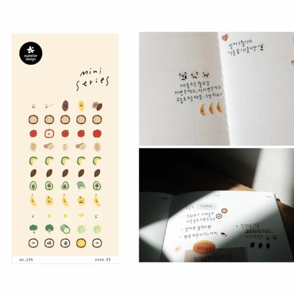 Najwyższej jakości mini naklejki "MINI Jedzenie #3" będące produktem koreańskiego producenta Suatelier. Ciekawe i nietypowe małe naklejki z mocnym klejem na odwrocie, idealne do personalizowania zeszytów, kalendarzy, planów, telefonów komórkowych, kartki pozdrowień i wielu innych przedmiotów. Oferują różnorodność wzorów - od prostych i stylowych, po bardziej kreatywne i kolorowe, co umożliwia dostosowanie naklejek do indywidualnych preferencji, jednocześnie podkreślając twoją osobowość i niepowtarzalność. Mini naklejki są wyprodukowane z materiałów najwyższej jakości i wydrukowane za pomocą zaawansowanych technik drukarskich, aby zapewnić ich długowieczność i jaskrawe kolory. Materiałem, z którego są wykonane naklejki, jest matowy papier powlekany. Rozmiar pojedynczego arkusza z naklejkami wynosi 7x15 cm.
