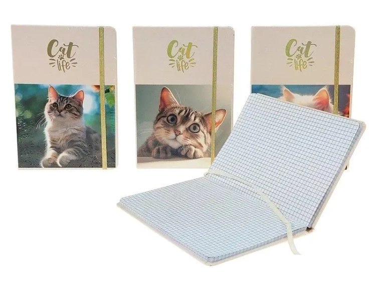 Stylowy Notes A5 w Kratkę z Motywem Kota
