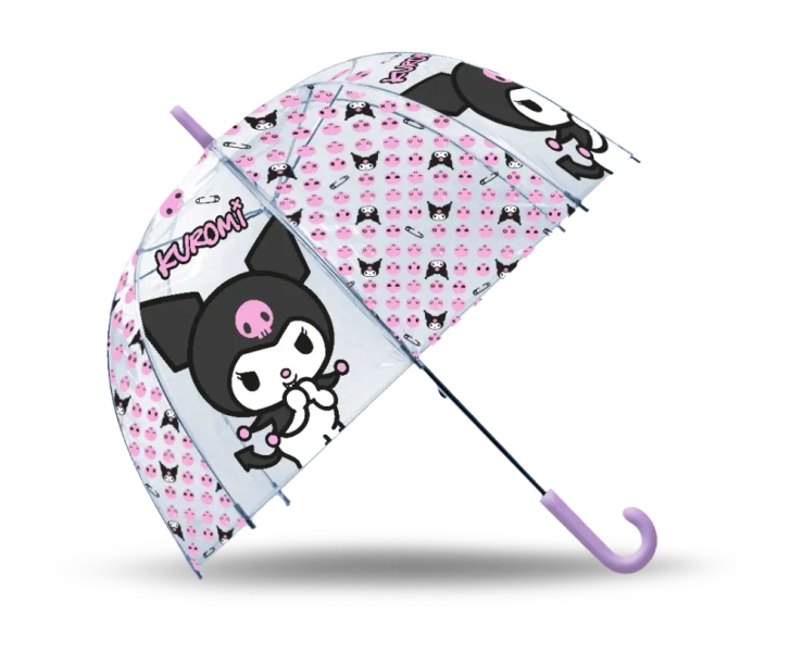 Parasolka Kuromi, manualna, przezroczysta, zapewni doskonałą ochronę dziecko zarówno przed deszczem jak i słońcem.