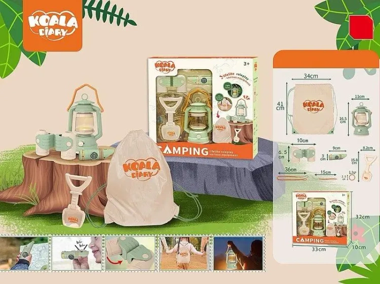 zestaw kempingowy 5 elem, lampa, lornetka, łopata, kompas, worek; 33x32x10cm, W/B