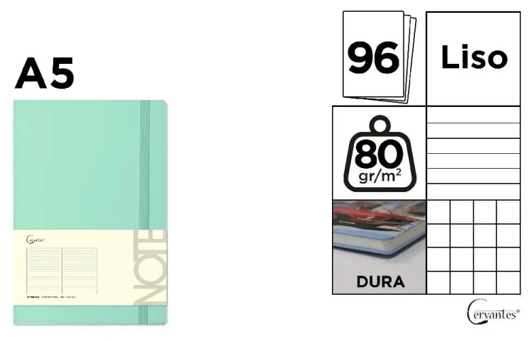 Notatnik A5/96K zielony pastelowy MIX - Cervantes